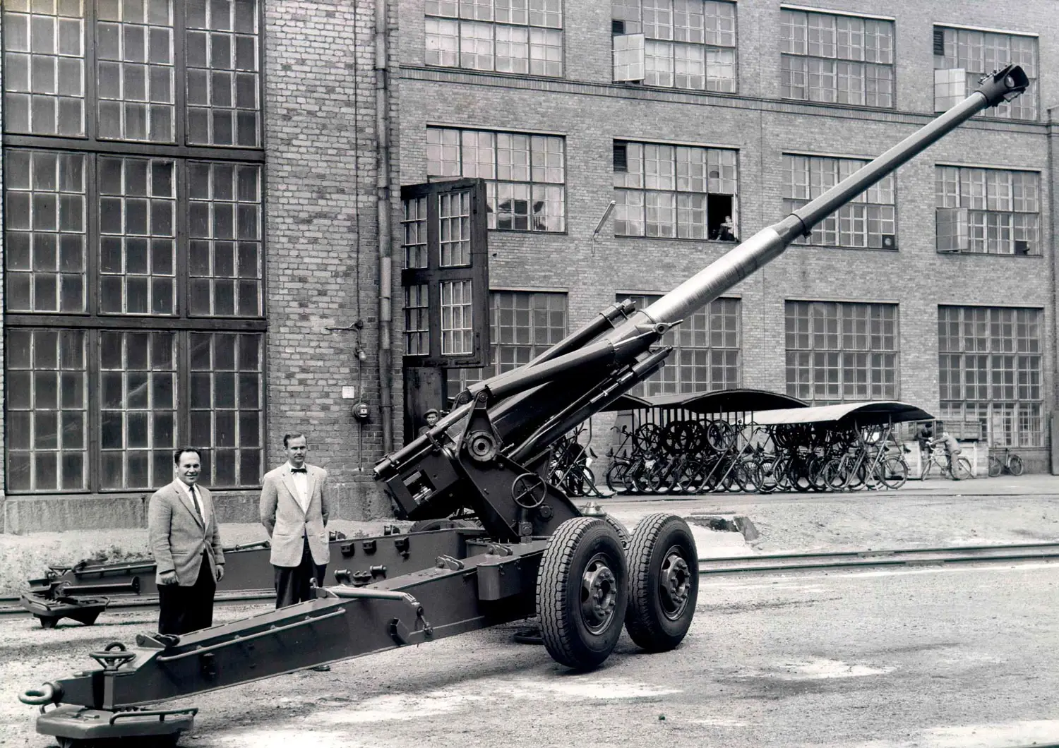 Moni suomalainen konepaja on valmistanut myös aseita erityisesti toisen maailmansodan aikana. Muun muassa höyryvetureita ja puuhiomakoneita valmistanut Tampella alkoi valmistaa kranaatinheittimiä 1930-luvulla ja sotavuosista alkaen tykkejä. Kuvassa ensimmäinen Puolustusvoimille valmistettu 122 K 60 -kanuuna Tampellan tehtaan pihalla 24. kesäkuuta 1960.