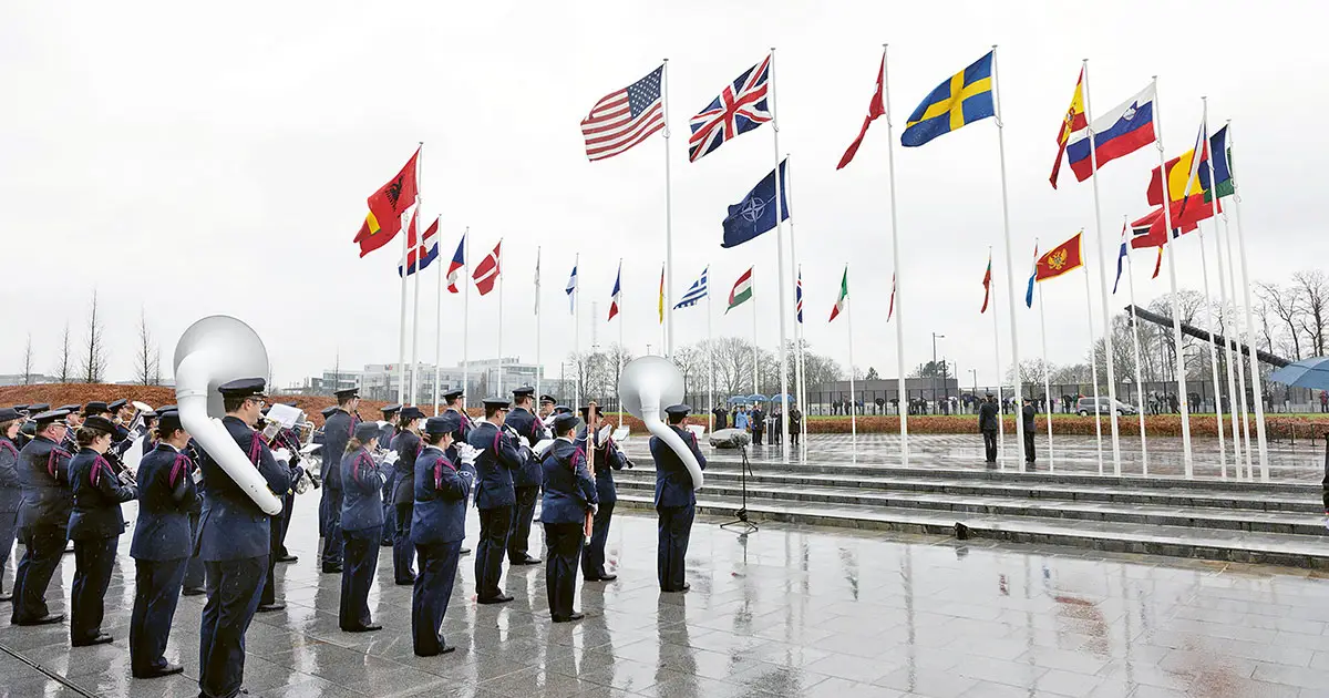 Kaikki Pohjoismaat ovat nyt puolustusliitto Naton jäseniä. Ruotsin lippu nostettiin salkoon Naton päämajan edessä Brysselissä 11. maaliskuuta 2024.